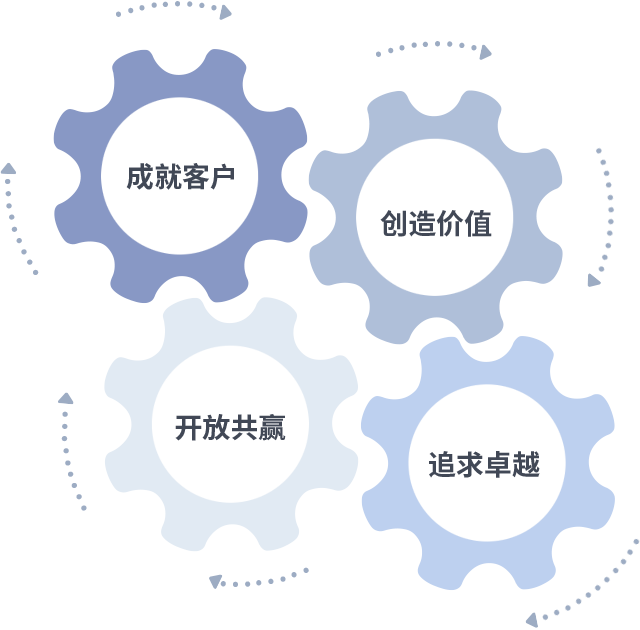 成就客户是一切决策的出发点,创造价值是衡量所有工作的标准,追求卓越是九州酷游做事做人的态度,开放共赢是九州酷游的格局也是最终的结果。价值观的齿轮环环相扣,推动着组织里的每个人不断向前。